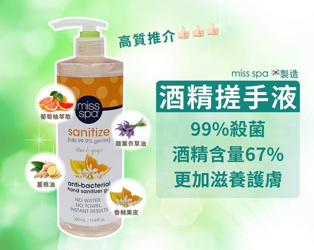 Miss SPA - [韓國製造]殺菌消毒免沖水搓手液-67%酒精 (500ml)